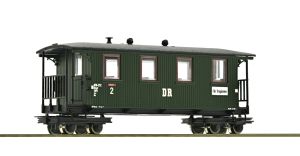 Waldbahn Personenwagen der Deutschen Reichsbahn mit Holzwänden. Epoche III-IV. Details zum Roco Modell Personenwagen der DR Spur H0e 1/87: Spur H0e 2-Leiter Zweileiter Gleichstrommodell analog/digital 9 mm Schmalspurgleis Epoche III-IV Länge über Puf